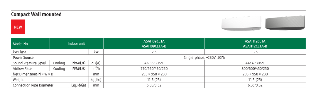 Dimension: H295 X W950 X D230 (mm)- (R) 3.50kW / (Max.) 3.80kW
